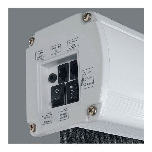 El sistema de control integrado incluye un interruptor en línea, control remoto incorporado, trigger 12v, RS232 y un receptor externo de infrarrojos (IR). Este sistema integrado todo en uno garantiza una pantalla adecuada para las aplicaciones más exigentes.
