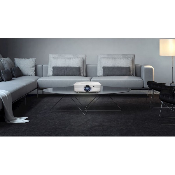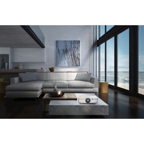 Fácil de configurar, este elegante proyector tiene un gran zoom de 1.6x y desplazamiento vertical de la lente para una integración perfecta en cualquier espacio de ocio.
