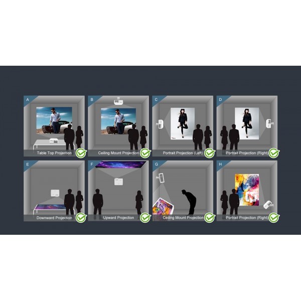 | CARACTERISTICAS ESPECIALES | Keystone vertical +- 40º Proyección 360º y portrait Altavoz 1 x 15W